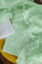Kota Doria Embroidered Unstitched Suit Material (Top + Bottom + Dupatta)